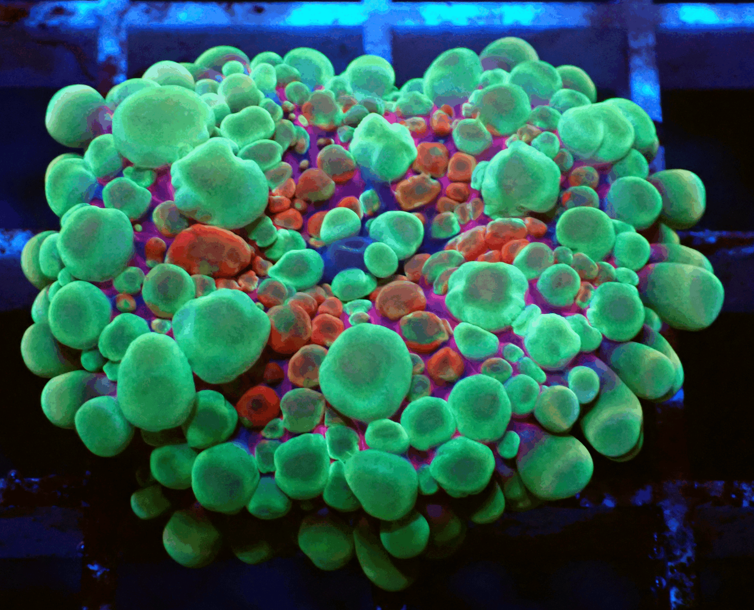 Photos taken under Radion Gen 4 Pro Blue spectrum using an underwater camera with lense. Please be aware that the corals colours may appear different under your aquariums lighting.