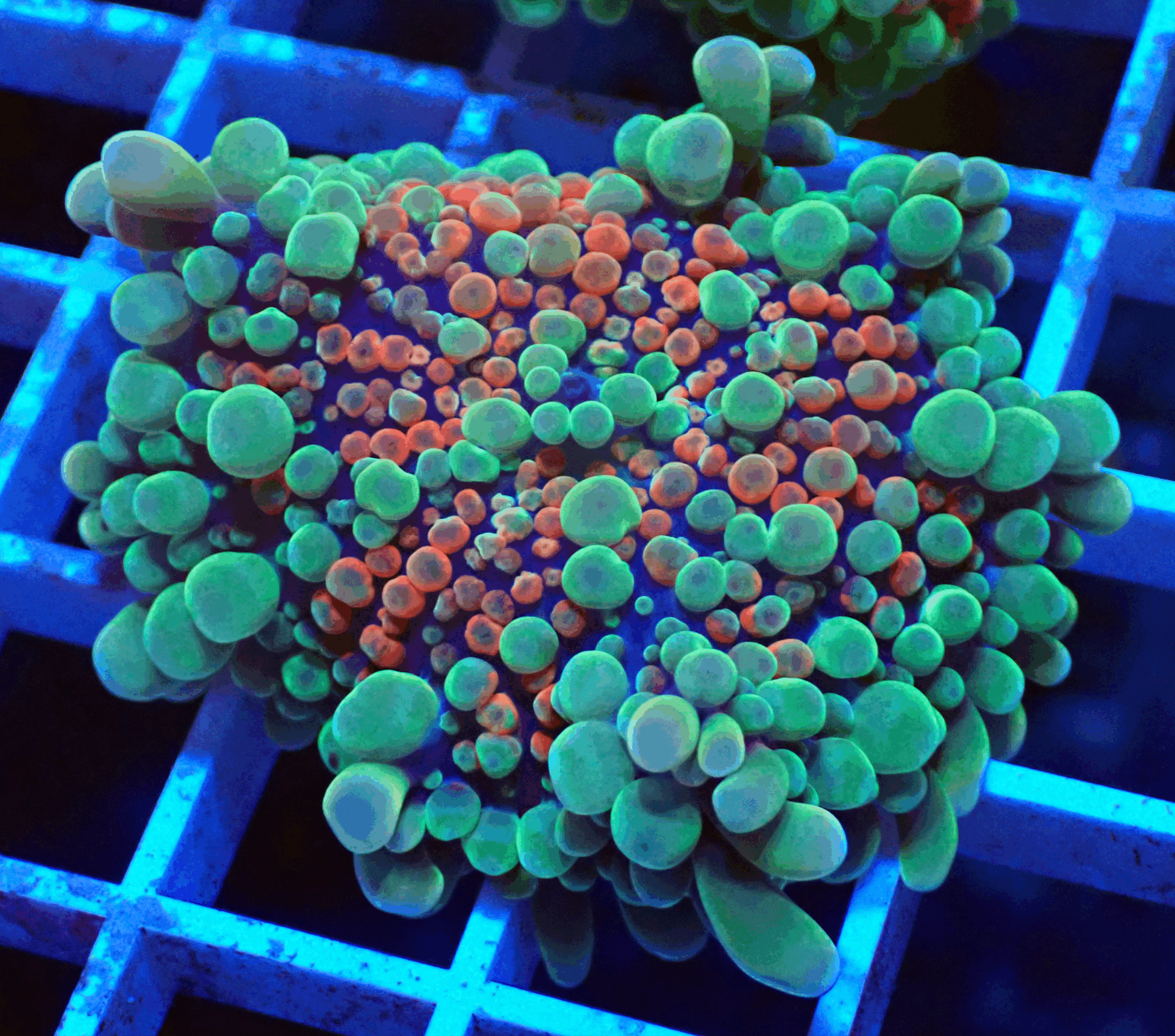 Photos taken under Radion Gen 4 Pro Blue spectrum using an underwater camera with lense. Please be aware that the corals colours may appear different under your aquariums lighting.