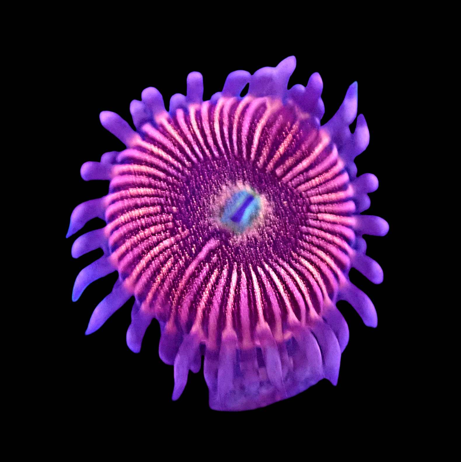 Photos taken under Radion Gen 4 Pro Blue spectrum using an underwater camera with lense. Please be aware that the corals colours may appear different under your aquariums lighting.