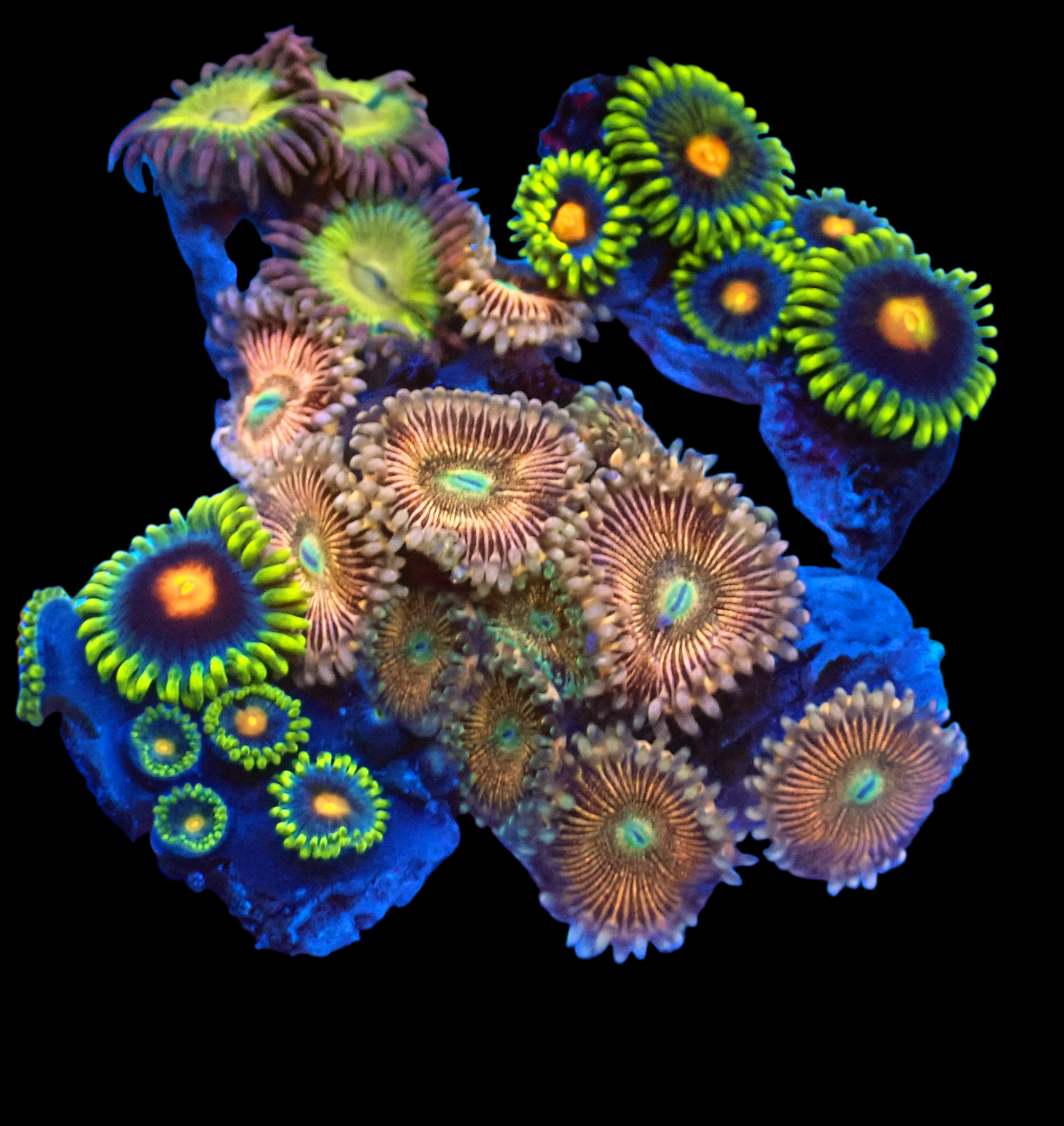 This is a “What you see is what you get” Coral including Peach Snapz, Blowpops and Lemon Bowtie Blasters- perfect for beginners and experienced reefers alike. Add a real splash of colour to your aquarium