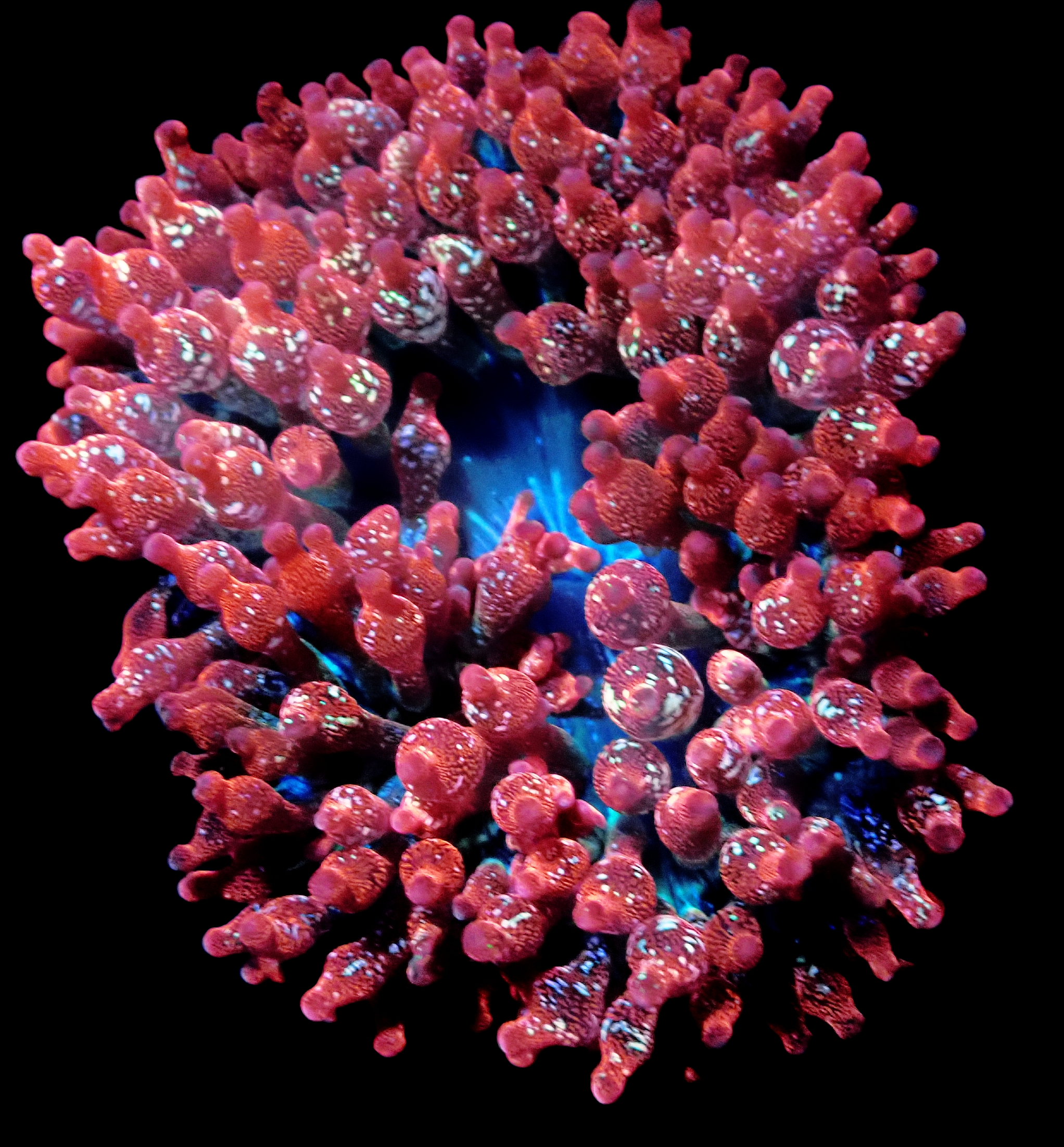 Photos taken under Radion Gen 4 Pro Blue spectrum using an underwater camera with lense. Please be aware that the corals colours may appear different under your aquariums lighting.